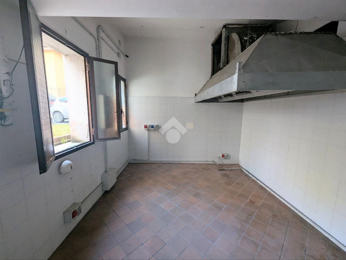 All’ingresso troviamo una spaziosa sala principale, perfetta come area clienti, showroom o ambiente operativo. A seguire è presente una cucina già predisposta per attività gastronomiche e tre bagni, soluzione comoda e conforme per attività con pubblico o personale.