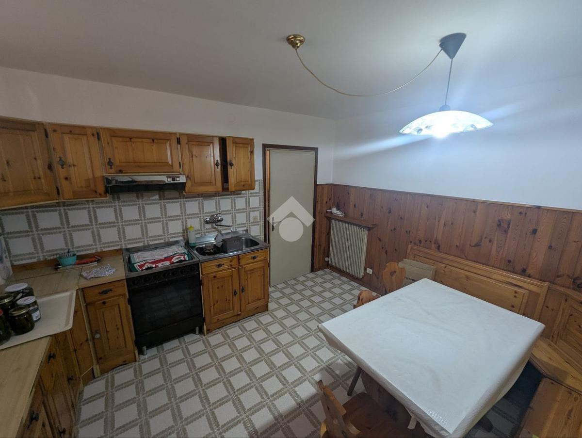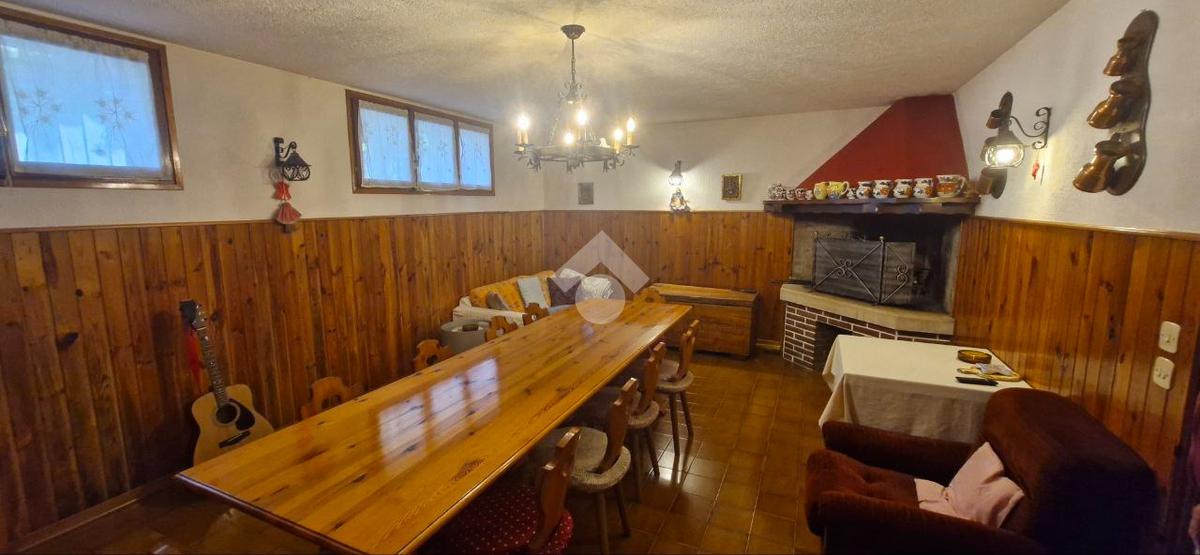 Il piano principale ospita una zona giorno accogliente con salotto dotato di stufa e una cucina funzionale.